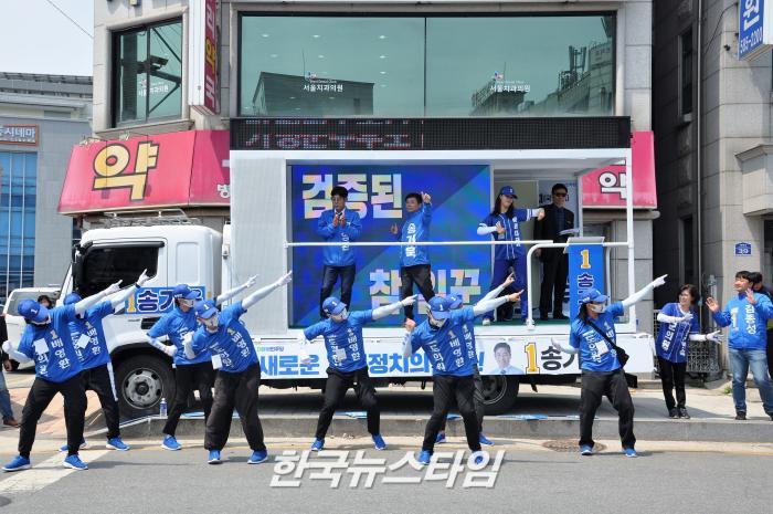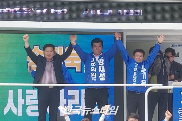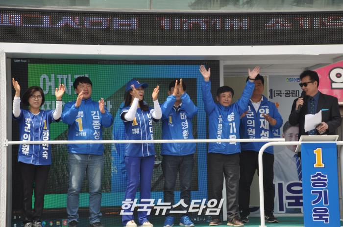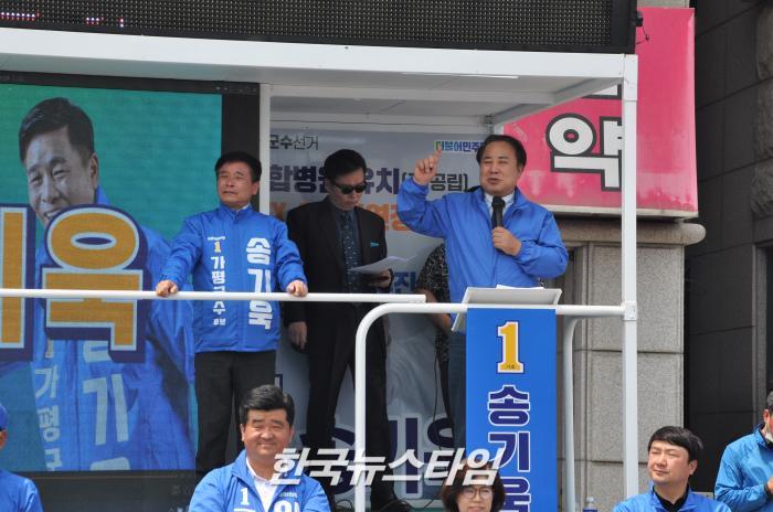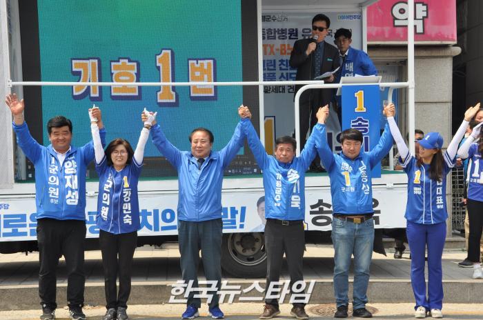 [한국뉴스타임=보도국] 제8회 전국동시지방선거 더불어민주당 송기욱 가평군수와 지방선거 후보들이 공식선거 개시일인 19일 오전 11시 조종면 터미널 앞에서 이철휘 지역위원장을 비롯해 더불어민주당 공천을 받은 지역 후보자 및 당원, 지지자, 주민 등이 참석하는 ‘6.1 지방선거 출정식’을 진행하였다.