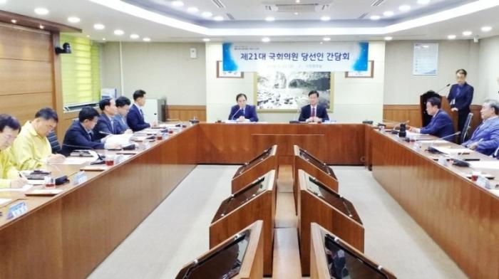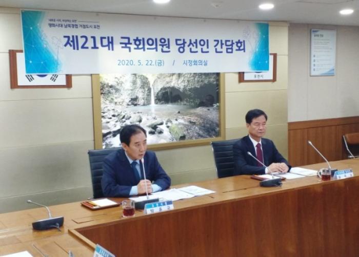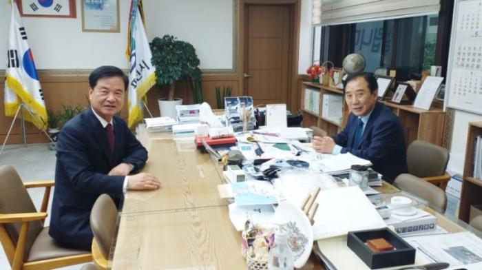 | 한편 간담회 시작전 박윤국 시장과 국회의원 최춘식 당선인은 시장실에서 비공식적으로 환담을 가졌다.