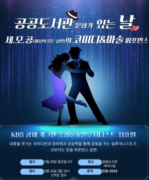 가정의 달을 맞아 열리는 이번 세모공은 KBS 코미디언 조래훈과 일루셔니스트 최효원이 꿈과 희망의 메시지를 담은 마술 공연으로 전 연령이 즐길 수 있는 유쾌한 웃음을 선사할 예정이다.