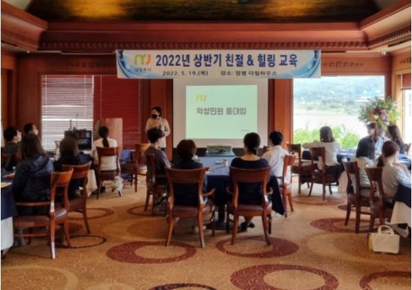 [한국뉴스타임=편집국] 남양주시는 지난 19일 민원담당공무원을 대상으로 양평에 위치한 더힐하우스에서 2022년 상반기 친절·힐링 교육을 실시했다고 밝혔다.