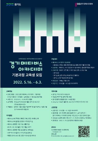 [한국뉴스타임=편집국] 경기도가 메타버스 전문인력 육성을 위한 ‘2022년 경기 메타버스 아카데미’ 기본과정 교육생을 다음 달 3일까지 모집한다고 24일 밝혔다.