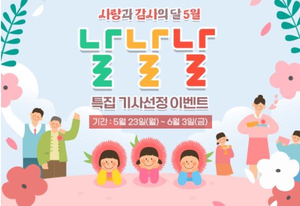 [한국뉴스타임=편집국] 사랑과 감사의 달 5월을 맞아 경기도가 ‘경기뉴스광장’ 최고의 기사를 뽑는 ‘사랑과 감사의 달 5월 날날날 특집 기사선정 이벤트’를 오는 6월 3일까지 진행한다.