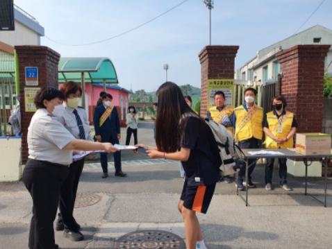 등교하는 학생들에게 사이버폭력 예방 리플릿과 외식상품권(햄버거 쿠폰)을 함께 배부하며 학교폭력 예방과 안전한 교육 환경 조성 등 학생들이 행복한 학교생활을 할 수 있도록 격려했다.