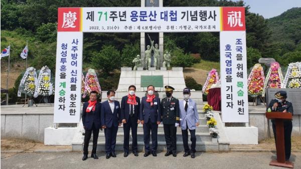 올해 71주년 기념행사에는 김성기 가평군수, 박정택 제6보병사단장을 비롯한 전제현 용문산전우회장 및 6·25 참전용사, 각급 기관·단체장, 군 장병, 학생, 지역주민 등 300여 명이 참석했다.
