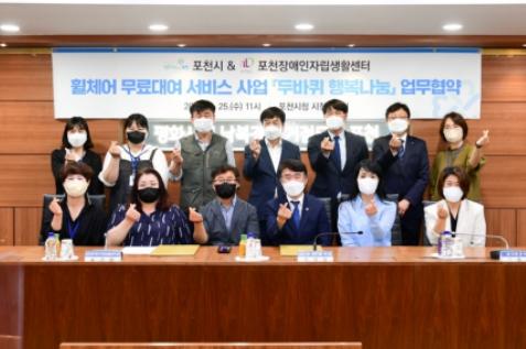 [한국뉴스타임=편집국] 포천시는 지난 25일 시정회의실에서 휠체어 무료대여 서비스 사업 ‘두바퀴 행복나눔’ 업무 협약식을 가졌다.