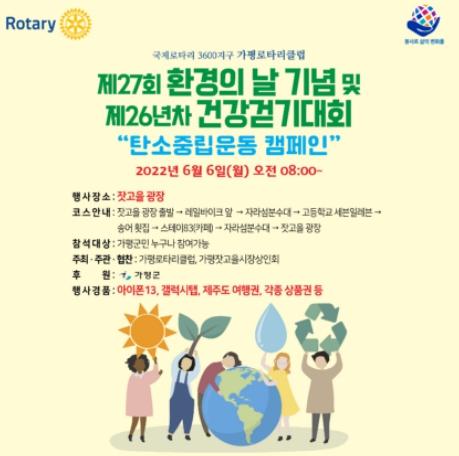 [한국뉴스타임=편집국] 가평로타리클럽, 가평잣고을시장상인회 주관으로 오는 6월 6일 오전 8시부터 제27회 환경의 날 기념 및 제26년차 건강걷기대회를 진행한다.