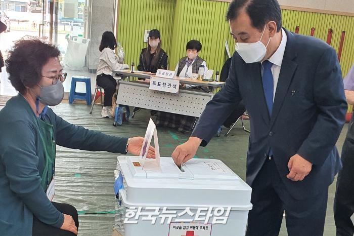 박윤국 포천시장 후보는 이날 오전 11시에 투표소를 찾아 소중한 한 표를 행사했다.