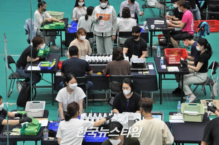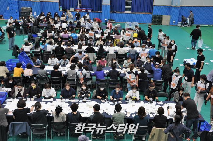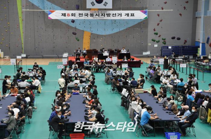 가평군은 한석봉체육관 개표소에서 8시 20분경부터 사전투표부터 개표가 시작되었다.