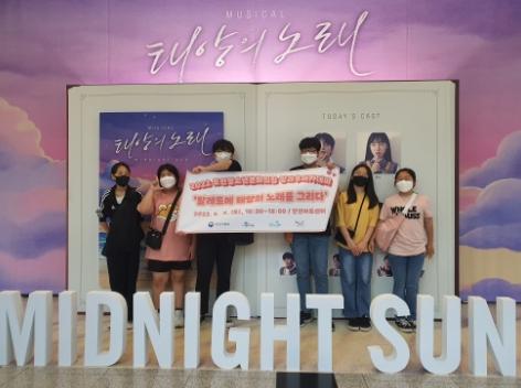 이번 관람은 청소년방과후아카데이 꿈터 내 연극동아리 ‘팔레트’에서 ‘팔레트에 태양의 노래를 그리다’라는 주제로 뮤지컬 관람을 통해 새로운 경험과 동아리 활동에 필요한 기술을 습득하고 문화예술적 감수성 함양을 위해 진행했다.