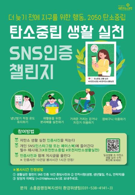 올해 4월부터 소흘읍에서 자체 추진 중인 ‘저탄소 생활실천 챌린지’는 일상에서 탄소배출을 줄이는 생활 습관 실천 등을 SNS에 인증해 저탄소 생활 실천을 생활화하도록 독려하는 캠페인이다.