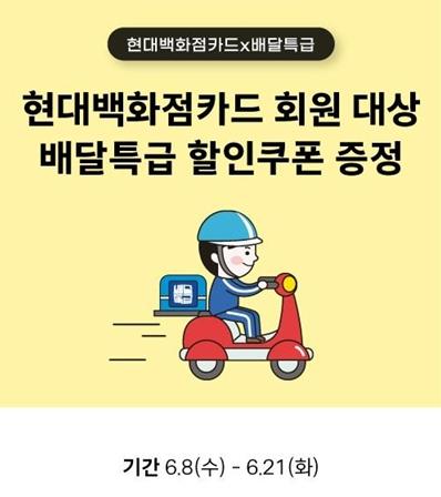 이번 이벤트는 경기도 소재 현대백화점 모바일 카드 회원 중 행사 기간 내에 배달특급에 신규 가입한 회원에게 총 1만3,000원 상당의 할인 쿠폰을 지급하는 것이 골자다(1인 1회 한정).
