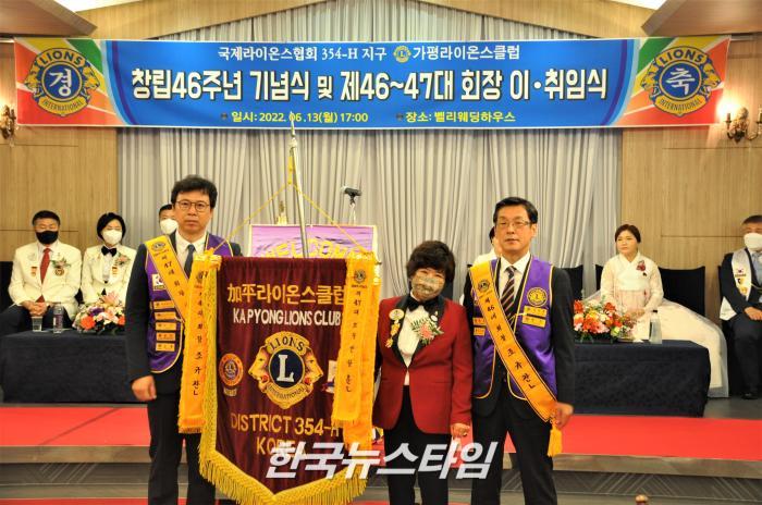 [한국뉴스타임=보도국] 13일 오후 가평군라이온스클럽은 창립46주년 기념식 및 제46·47대 회장 이·취임식을 개최하였다.