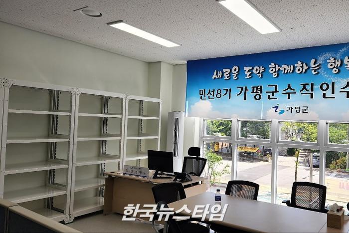 또한 서태원 당선인 책상은 가평군청에서 파견한 직원들 사무공간 구석에 배치되어 있다.