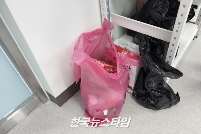 | ( 사진 / 인수위 사무실에 쓰레기통 등의 필수 사무용품도 없어 현재 쓰레기봉투를 사용하고 있다 ) |