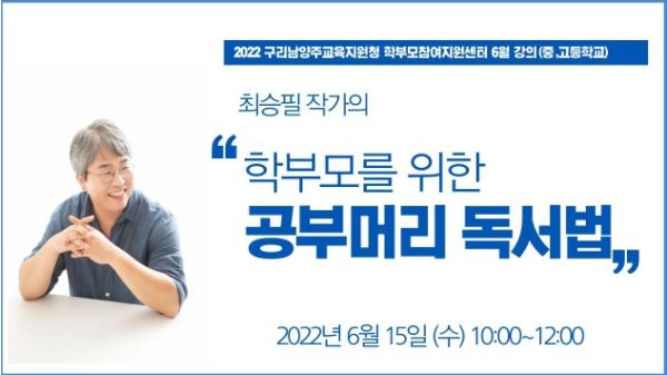 경기도구리남양주교육지원청(교육장 최상익)은 관내 초·중·고등학교 학부모를 대상으로 '공부머리 독서법'의 저자 최승필 작가를 초대하여 '학부모를 위한 공부머리 독서법' 연수를 진행했다.