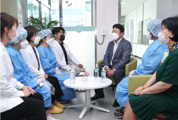 [한국뉴스타임=편집국] 16일 서태원 가평군수 당선인은 가평군보건소를 방문하여 지난 2년 여간 코로나19 대응 의료현장 최일선에서 군민들의 일상회복을 위해 책임을 다하고 있는 의료진과 관계자들을 격려하며 감사의 뜻을 전했다.