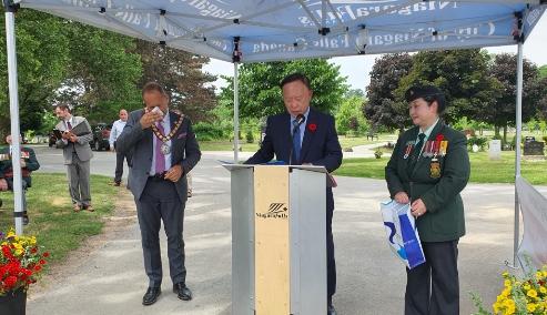 [한국뉴스타임=편집국] 가평군이 기증한 가평석에 한글과 영문으로 비문을 새긴 가평전투승전비가 제막식이 지난 16일 진행되었다. 제막식은 나이아가라 폭포 인근 페어뷰공원묘지에서 캐나다군 한국전 참전용사와 김성기 가평군수, 연아마틴 상원의원, 짐디오다티 나이아가리시장, 김득환 토론토총영사, 캐나다 동부지구 한인단체장 및 교민 등 250명이 참석한 가운데 성대하게 거행되었다.