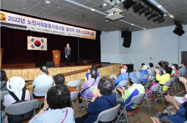 [한국뉴스타임=편집국] 구리시는 16일, 2022년 노인일자리사업 참여자를 대상으로 구리시청 대강당에서 일자리 안전교육을 실시했다.