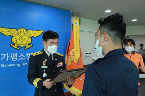 [한국뉴스타임=편집국] 가평소방서는 22일 오전 소회의실에서 공군 제8386부대에 대하여 화재진압 유공 표창 수여식을 가졌다고 밝혔다.