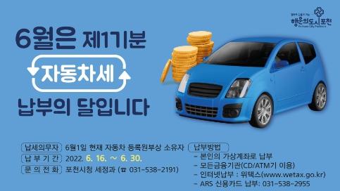 [한국뉴스타임=편집국] 포천시는 2022년 6월 정기분 자동차세(60,391건)를 56억 원 부과하고 고지서를 일제히 우편발송 했다.