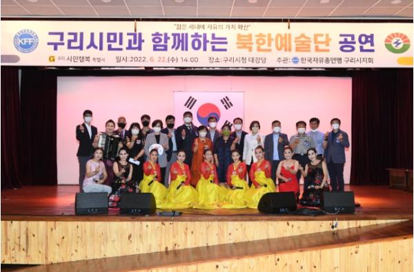 [한국뉴스타임=편집국] 구리시는 22일 시청 대강당에서 한국자유총연맹 구리시지회(회장 김석진) 주관으로 시민 및 회원 300여 명이 참석한 가운데'구리시민과 함께하는 북한예술단 공연' 을개최했다.