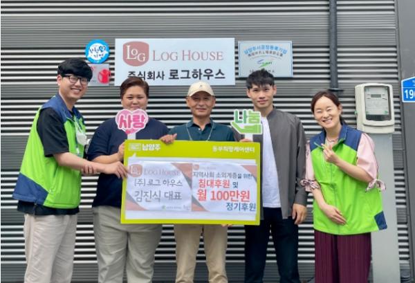 ㈜로그하우스(대표 김진식)는 지난 5월 가정의 달을 맞아 지역 소외계층을 위해 월 100만 원의 정기후원금을 동부희망케어센터에 기탁하며 침대 등 가구 후원의 의사도 밝혔다.