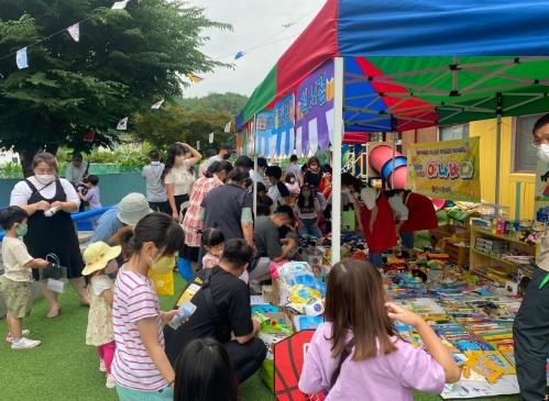 기탁금은 지난 18일 한솔어린이집 앞마당에서 열린 ‘아나바다·시장놀이’의 수익금으로, 옷, 책, 장난감 등을 지원받아 어른들과 아이들이 함께 판매한 금액과 자원봉사자가 먹거리 장터에서 파전 등을 판매하여 얻은 수익금의 총액이다.