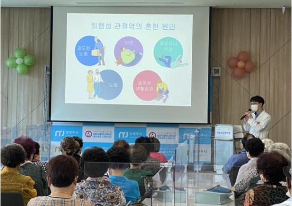 남양주시동부노인복지관(이사장 김도묵)은 지난 22일 (사)한국만성질환관리협회(회장 민용기), 남양주 삼성바른병원(원장 우민수)과 연계해 퇴행성 관절염을 주제로 건강교육을 실시했다.