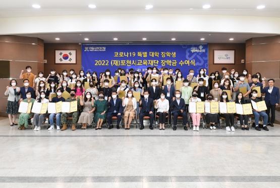 (재)포천시교육재단은 지난 24일 ‘코로나19 특별 대학 장학생’으로 선발된 대학생을 대상으로 장학금 수여식을 개최했다.