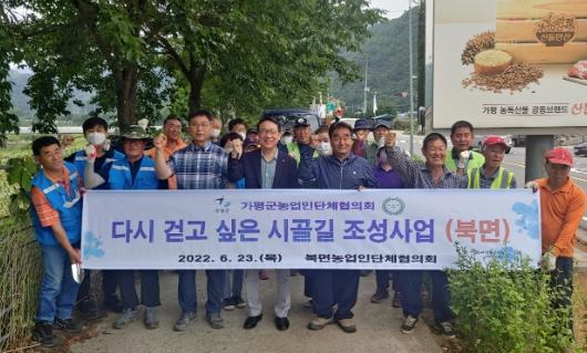 또한 가평군농업인단체협의회는 코로나 펜데믹으로 각종 사회활동과 교류행사가 제한되면서 사회분위기 전반이 위축되어 경제적, 정서적으로 어려운 시대에 가평군 곳곳에 희망을 열어가는 마음으로 읍면 농업인단체 및 지역주민과 협력하여 지역분위기를 활성화하기 위하여 아름답고 다시 걷고 싶은 시골 명소길 조성사업을 추진하였다