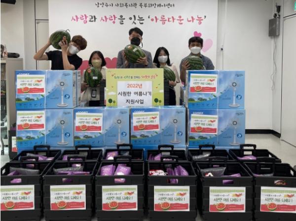 [한국뉴스타임=편집국] 남양주시사회복지관 북부희망케어센터는 지난 22일 지역사회 저소득 이웃 170명을 위한 물품 지원 사업 ‘시원하(夏)게 여름나기’를 진행했다.