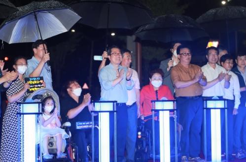 조 시장을 비롯한 참석자들은 노약자나 장애인, 휠체어나 유모차를 동반한 시민 누구나 전망대까지 편하게 오를 수 있도록 고안된 8.3%의 낮은 경사도와 무장애 데크를 직접 체험하는 시간을 가졌으며 궂은 날씨를 환하게 밝히는 바닥분수 점등식을 끝으로 이날 행사를 마무리했다.