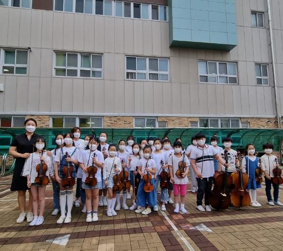 담당 교사는 "오케스트라는 다른 악기와의 조화로운 하모니를 만들어 내는 종합 문화 예술 활동으로 인내와 성실성을 함양시키고, 타 악기와의 협력을 통해 인성과 감성, 지성을 한꺼번에 함양할 수 있는 예술교육활동"이라며 "모든 어린이와 교직원이 음악으로 하나되어 학교 생활을 활기차게 이끌어 나갈 수 있는 계기"라고 활동의 의의를 전했다.