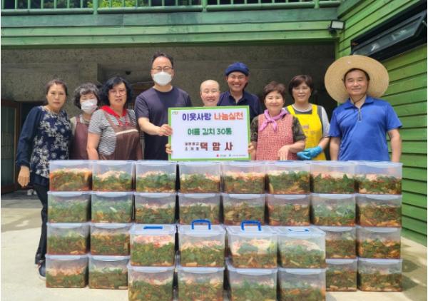 [한국뉴스타임=편집국] 남양주시 와부읍에 위치한 대한불교 조계종 덕암사(도림 주지 스님)는 지난 25일 지역 내 북한이탈주민, 조손ㆍ다문화 가정 등의 취약계층에 전달해달라며 남부희망케어센터(센터장 김기수)를 통해 여름 김치 30통(5kg)을 기탁했다.