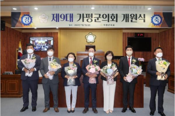 [한국뉴스타임=편집국] 제9대 가평군의회 개원식이 7월 1일 가평군의회 본회의장에서 7명의 군의원과 서태원 군수, 기관장, 의원 가족 등이 참석한 가운데 개최되었다.