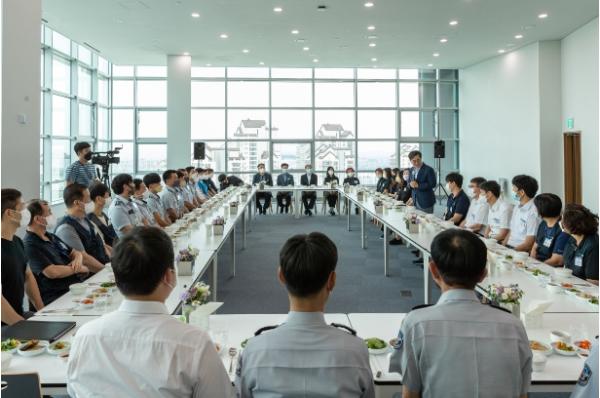 [한국뉴스타임=편집국] 김동연 경기도지사가 도청 내 현장 근무직원과 오찬을 함께하며 격려했다.