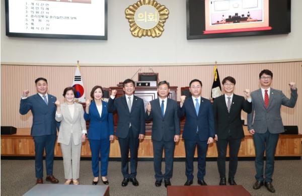 이날 열린 제313회 임시회 제1차 본회의에서는 의장 권봉수 의원(3선, 더불어민주당), 부의장 양경애 의원(재선,더불어민주당), 운영위원장 신동화 의원(3선, 더불어민주당)을 각각 선출하여 전반기 의장단을 구성했다.