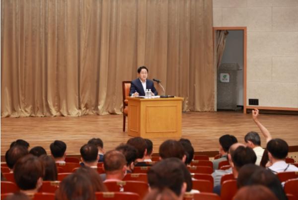 주 시장은 일문일답 방식으로 직원들의 질문에 답한 후 시정 철학과 시정 운영 방향 등을 설명하고, 시민시장시대를 이끌어 가기 위해 공무원들의 혁신과 변화를 당부했다.