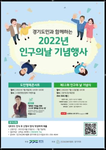 [한국뉴스타임=편집국] 경기도와 인구보건복지협회경기회는 7월 11일 인구의 날을 기념해 오는 9일부터 16일까지 ‘2022년 경기도 인구주간’을 운영한다.