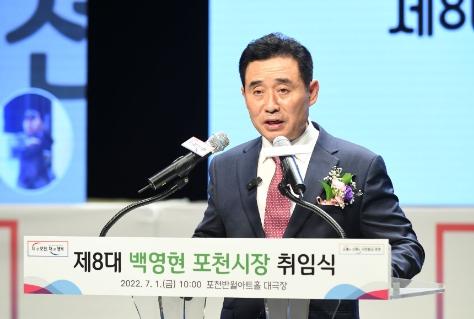백영현 포천시장은 “민선8기 4년의 임기 동안 포천시 행정의 주인인 포천시민의 행복을 위해 최선을 다하겠다. 시민과 소통하며 이를 바탕으로 포천시의 새로운 미래를 힘차게 열어가겠다.”고 말했다.