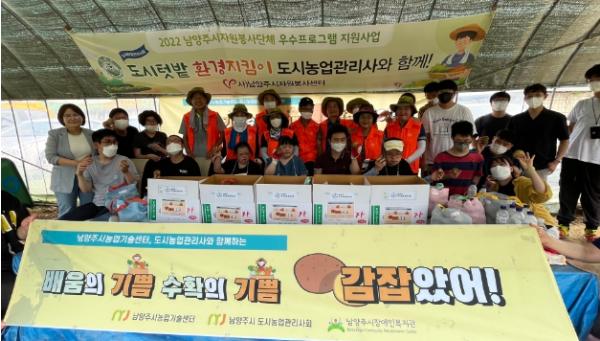 남양주도시농업관리사회를 주축으로 회원 10명, 복지관 장애인 20명이 참여한 가운데 남양주농업기술센터의 협조를 받아 와부읍 소재 텃밭에서 직접 약 70kg의 감자를 수확했으며, 수확한 감자는 참여 장애인들의 가정으로 전달됐다.
