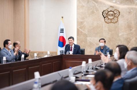 김현택의장은 인사말을 통해“선배의원님들의 지속적인 시정과 의정에 대한 관심에 감사드린다.”며“존경하는 선배님들이 쌓아 놓으신 업적을 지키고 발전시켜 우리 의회가 시민들께 의회다운 의뢰로 평가 받을 수 있도록 최선을 다해 노력하겠다.”고 밝혔다.