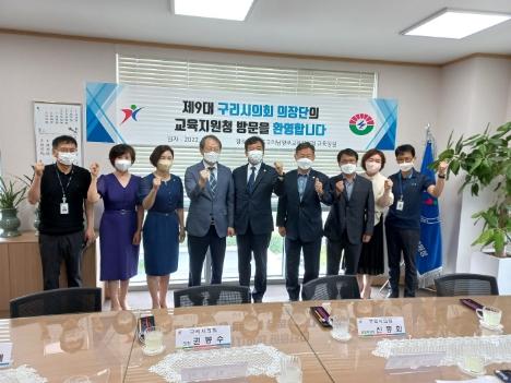[한국뉴스타임=편집국] 경기도구리남양주교육지원청은 구리시의회 권봉수 의장, 양경애 부의장, 신동화 운영위원장과 2022. 7. 7.(목) 정담회를 개최하여 구리 지역의교육협력 활성화를 위해 긴밀히 협조하기로 하였다.