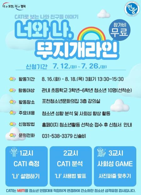 [한국뉴스타임=편집국] 포천청소년문화의집은 오는 26일까지 청소년수련활동인증 프로그램 ‘너와 나, 무지개라인’을 참가할 청소년을 모집한다.