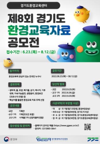 [한국뉴스타임=편집국] 경기환경에너지진흥원이 기후위기 대응 등 환경교육 현장에서 활용할 교육자료 발굴을 위해 ‘제8회 경기도 환경교육자료 공모전’을 열고 다음 달 12일까지 참여자를 모집한다.