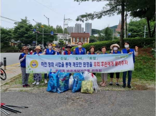 이날 활동에 참여한 바르게살기운동 남양주시협의회 평내동위원회 회원들은 방역 수칙을 준수하며 평내동 상가 골목길과 무단 투기 지역 등 마을 곳곳에서 쌓여 있는 쓰레기 약 300리터를 수거했다.