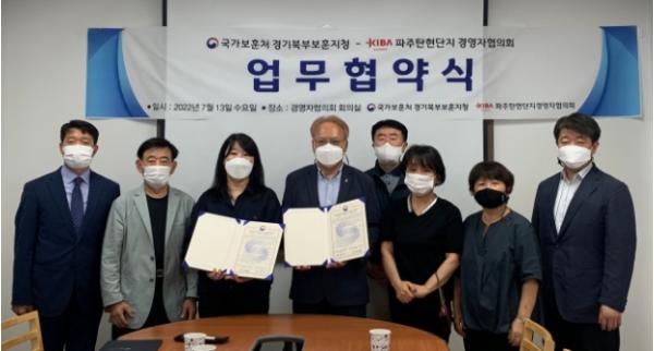 [한국뉴스타임=편집국] 국가보훈처 경기북부보훈지청(지청장 한국성) 경기북부제대군인지원센터는 ’22년 7월 13일에 파주 탄현국가산업단지 경영자협의회와 “제대군인 일자리 창출과 제대군인의 안정적인 사회정착을 지원하기 위한 업무협약”을 체결하고, 간담회 시간을 가졌다.