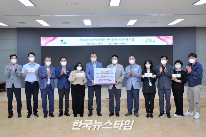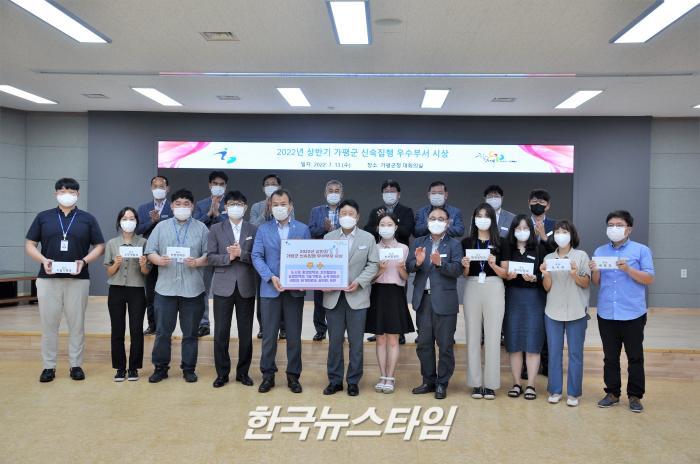 최우수부서는 예산규모 200억이상 교통과(장석조 과장), 100억이상 기획감사담당관(담당관 박재근), 50억이상 안전재난과(공석), 5억이상 가평보건소(소장 박정연), 읍·면 청평면(공석)이 선정되었다.