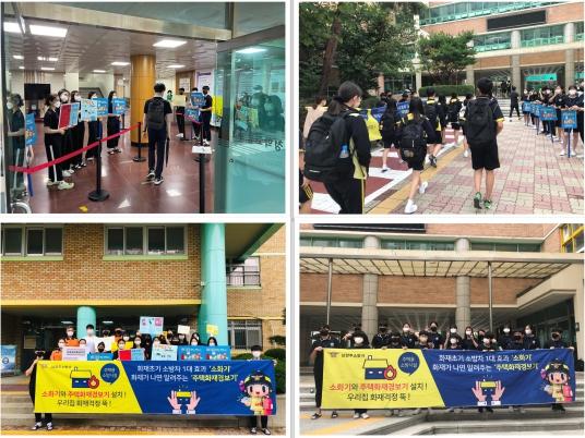 이번 캠페인은 8일 청학고등학교, 15일 도농중학교에서 119청소년단원 40명과 교직원, 소방서 직원 등 참여로 진행됐다.