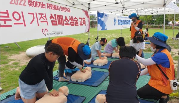 교육 및 체험은 심폐소생술강사단, 자원순환전문봉사단, 청년봉사단 등 총30여명의 자원봉사자의 진행으로 이루어졌다.